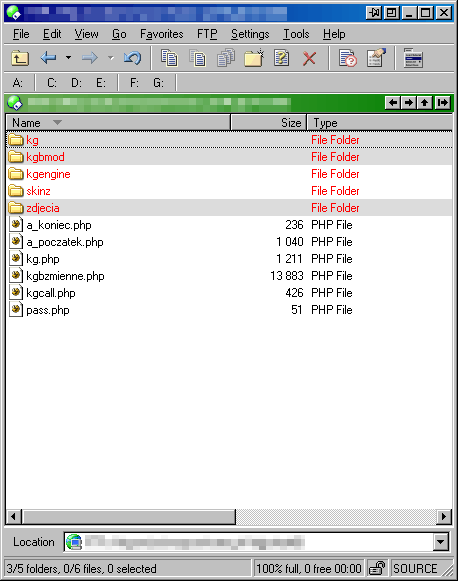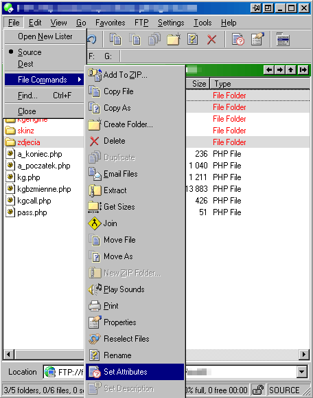 3. Należy zaznaczyć na FTP katalogi "kg", "kgbmod" oraz "zdjecia" i nadać im pełne prawa:
