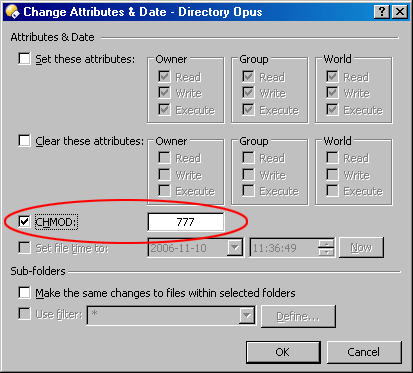 4. Należy również nadać prawa plikom w katalogach "kg" oraz "zdjecia". Dla plików wartością chmod jest 666: