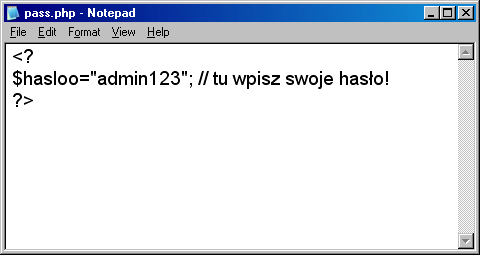 1. Należy wyedytować (np. przy pomocy notatnika) plik "pass.php":