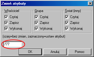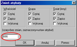 4. Należy również nadać prawa plikom w katalogach "kg" oraz "zdjecia". Dla plików wartością chmod jest 666: