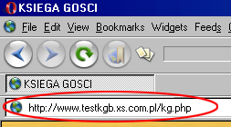 Adresem księgi jest www.nazwastrony.pl/kg.php (lub, jeżeli księga znajduje się w podkatalogu - www.nazwastrony.pl/podkatalog/kg.php)