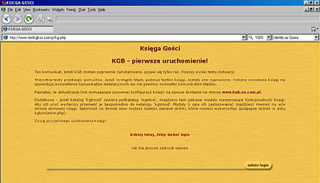 Następne czynności takie jak konfiguracja (plik kgbzmienne.php edytowany podobnie jak plik "pass.php"), dodawanie nowych skórek, modułów itd. nie powinny sprawić większych problemów.